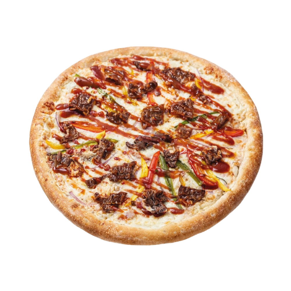 Соус сальса, свинина, красный лук, болгарский перчик и сыр моцарелла.