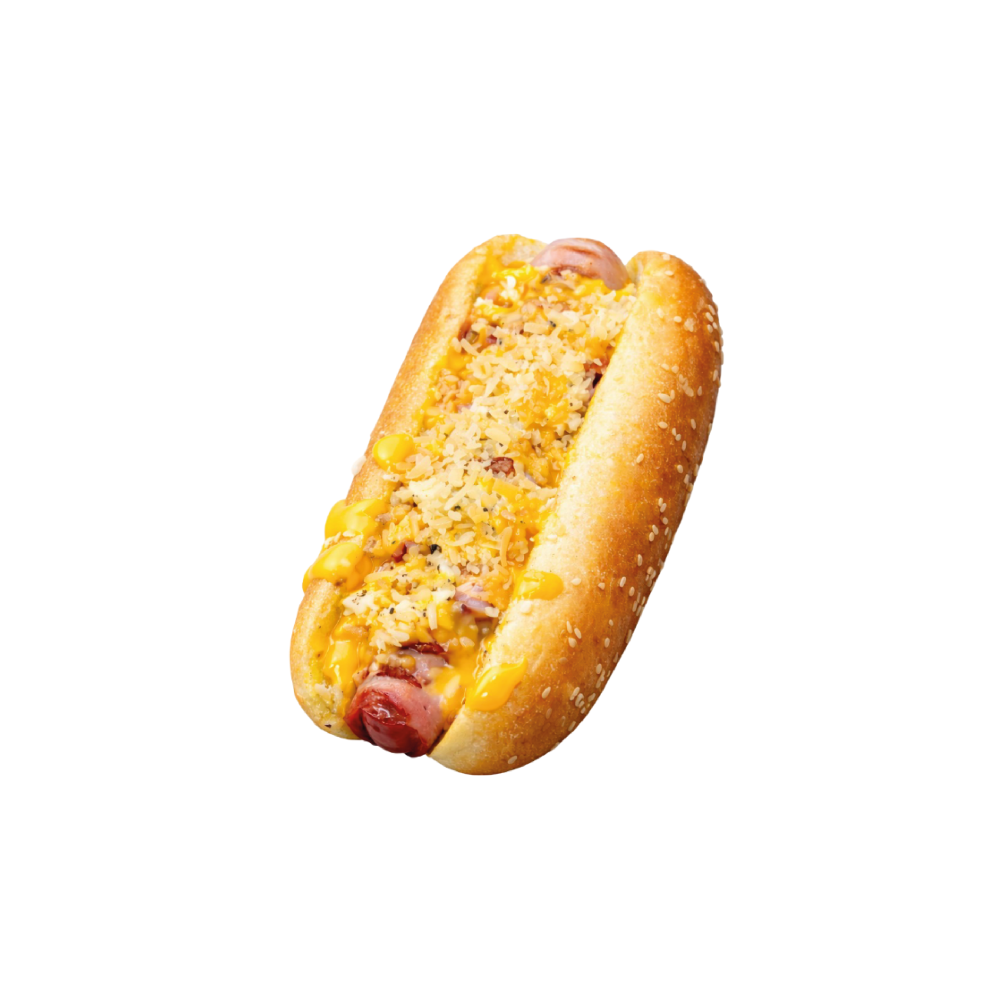 Сыр моцарелла, жидкий чеддер, колбаска, бекон, сырный соус и пармезан.